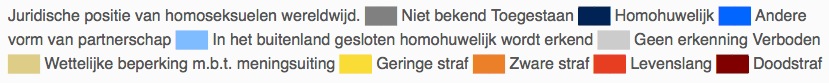 Helaas is Jamaica niet het enige land waar homoseksualiteit verboden is. In Egypte worden homo’s zelf gezocht via de homoseksuele dating App Grindr. Homo’s en lesbiennes worden in veel landen zelfs veroordeeld tot meerdere jaren gevangenisstraf. Onwerkelijk voor ons hier in Nederland. Op Wikipedia staat onderstaande afbeelding met daarop in verschillende kleuren gearceerd in welke de landen homoseksualiteit nog verboden is.