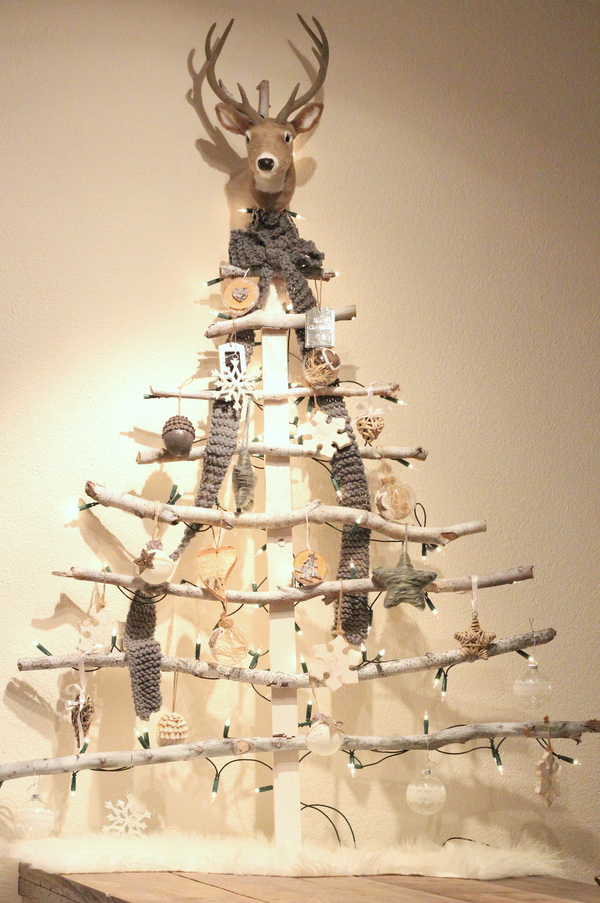 Doen we dit jaar wel of geen een kerstboom? Het is toch een heel gedoe om zo’n ding te gaan kopen, mee te nemen naar huis en helemaal op te tuigen. Het kost ook weer aardig wat geld. Tegelijkertijd is het heel gezellig en hoort een boom een beetje bij de kerst in huis. Vorig jaar konden we geen kerstboom in huis halen omdat we Sjors net hadden en hij alles pakte wat los en vast zat. Dit jaar is Sjors een pubertje en pakt hij nog steeds graag alles wat los en vast zit. Daarom hebben we vorig jaar zelf een boom gemaakt voor op tafel. Dat was superleuk om te doen. We hebben stokken verzameld, een latje en witte spuitbus bij Praxis gekocht en zijn toen gaan klussen. Kijk, dit is het resultaat.