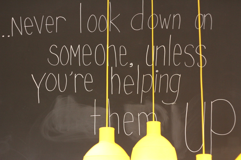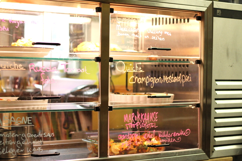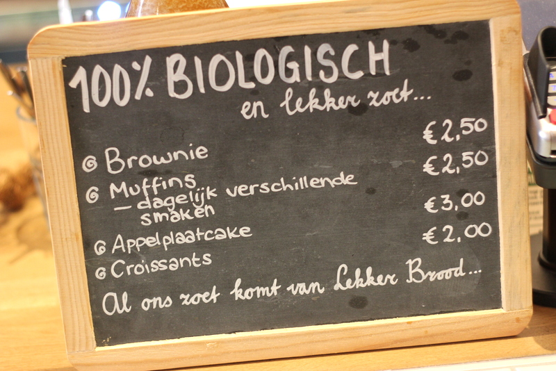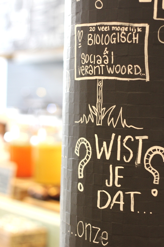 Het meeste wat je hier kunt eten is biologisch. De producten die op de balie lagen zagen er allemaal heel goed en lekker uit. Aan het einde van de zaak stond boven tegen de muur aan een mooie quote met krijt geschreven, erg leuk!