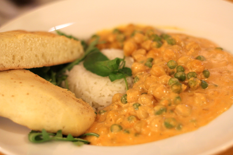 Er zijn twee avondmaaltijden te bestellen. Scarlet en ik besluiten beiden een andere avondmaaltijd te nemen, zodat we van elkaar kunnen proeven. Ik ga voor de vegetarische lasagne en Scarlet gaat voor de Indiase korma met kikkererwten. Binnen een kwartiertje wordt onze maaltijd geserveerd.