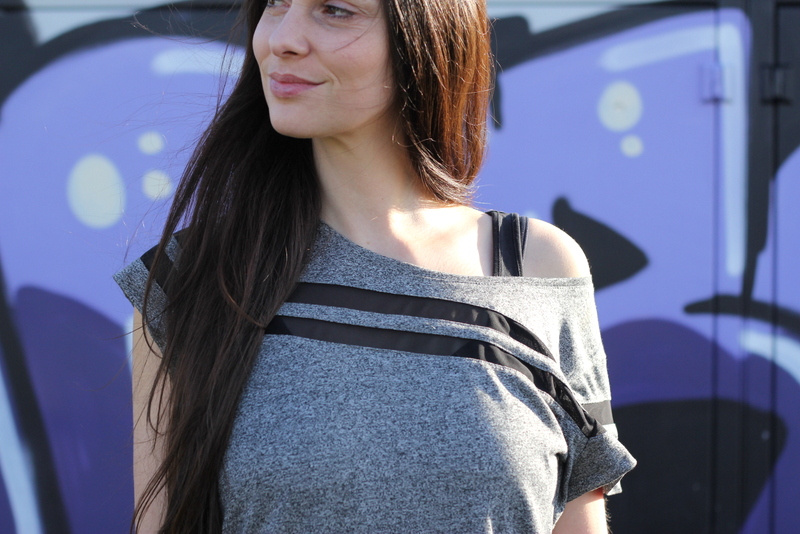 Het shirt heeft een brede hals waardoor hij soms een beetje over mijn schouder valt. Dat vind ik wel mooi. De zwarte banen zijn trouwens een beetje doorzichtig, wat het ook weer net iets aparter maakt.