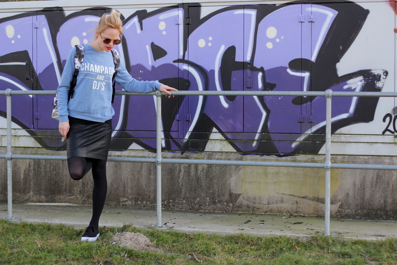Het rokje is trouwens van H&M, maar is al wat ouder dus waarschijnlijk niet meer te vinden in de winkel. Gelukkig zijn er honderden van dit type rokjes te vinden, dus mocht je graag een trui op deze manier combineren met een leather look rokje, dan zal je waarschijnlijk snel slagen als je een H&M, Zara of Bershka binnenwandelt.