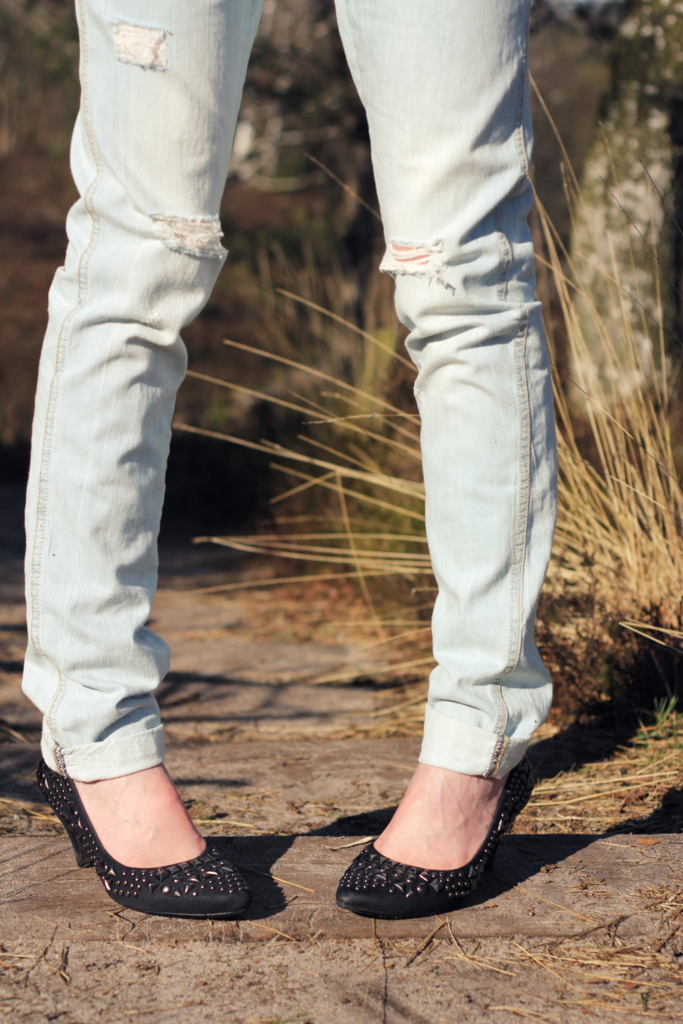 Ik kan de broek dragen met stoerdere gympjes eronder die ik van Loavies heb, maar ik kan de broek ook perfect combineren met een paar pumps die ik ooit gekocht hebt bij Sacha. De pumps zorgen zeker voor die vrouwelijke touch die ik graag bij deze stoere broek zie.