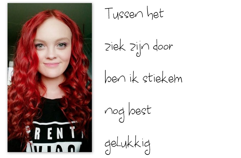 Ik kan zo intens genieten van het gefluit van een vogeltje, het briesje door mijn haar, het zonnetje op mijn gezicht, het tokkelen van een gitaar of de bloemetjes die bloeien in de wei. Alles waar de meeste mensen te snel aan voorbij gaan omdat ze teveel te doen hebben zie en hoor ik wel, want: ik heb alle tijd. Dus ondanks mijn gebrek aan socialiteit, gebrek aan fysieke mogelijkheden en mijn bedlegerigheid ben ik tussen het ziek zijn door stiekem best nog wel gelukkig.
