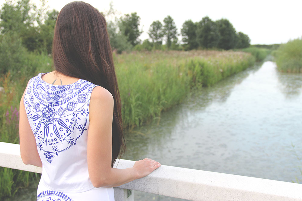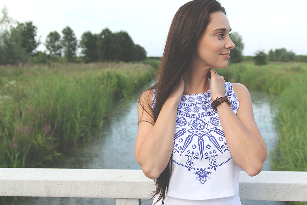 Deze setjes met een soort van delfts-blauw zagen we al in meerdere webshops. Zo leuk en apart! Ik heb hiervan ook een jurkje, maar Joyce wilde dit wel graag in een topje en rokje. Ze bestelde deze Porcelain set die 33 Dollar kost. Het rokje zat perfect, maar het topje sloot niet helemaal goed aan (dat zie je niet echt goed op de foto). Het setje staat Joyce wel heel mooi vind ik. Je kunt de set hier in de webshop vinden.
