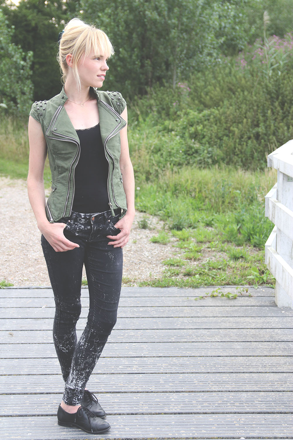Ik heb een toffe groene studded blazer uitgekozen. Ik had een tijd geleden een zelfde soort jasje hiervan besteld, maar deze is me helaas te groot. De blazer zit daarentegen perfect. Ik vind de blazer stoer én vrouwelijk tegelijk en daar houd ik van. Hij heeft een mooi rechtopstaand kraagje, studds en meerdere ristjes. De kleur van de blazer is hetzelfde als de kleur van mijn ogen. De blazer kost 59 Dollar en is hier te vinden in de webshop.