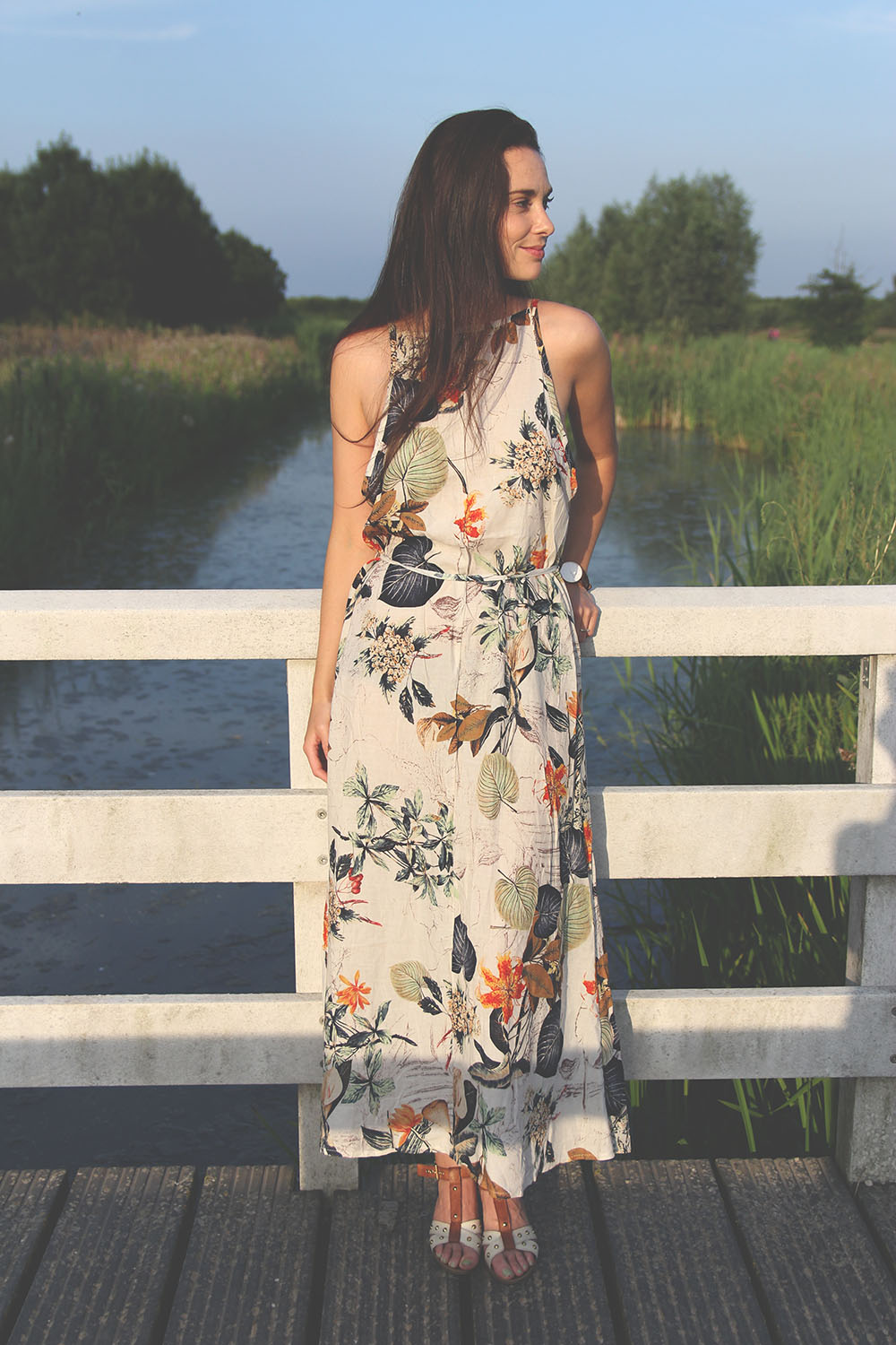 Joyce draagt hier een hele mooie zomerse maxi dress met zijsplit. Op het eerste gezicht als je de jurk aantrekt ziet hij eruit als een eenvoudige lap stof. Het centuurtje zorgt er echter voor dat hij mooi gaat zitten. De stof is lekker dun en dus perfect tijdens warme dagen. De jurk heeft een mooie lengte voor iemand van 1,67 meter. De prijs van de jurk bij Lookbookstore is 33 Dollar. Je kunt de jurk hier vinden in de webshop. Dit is een maat 34.