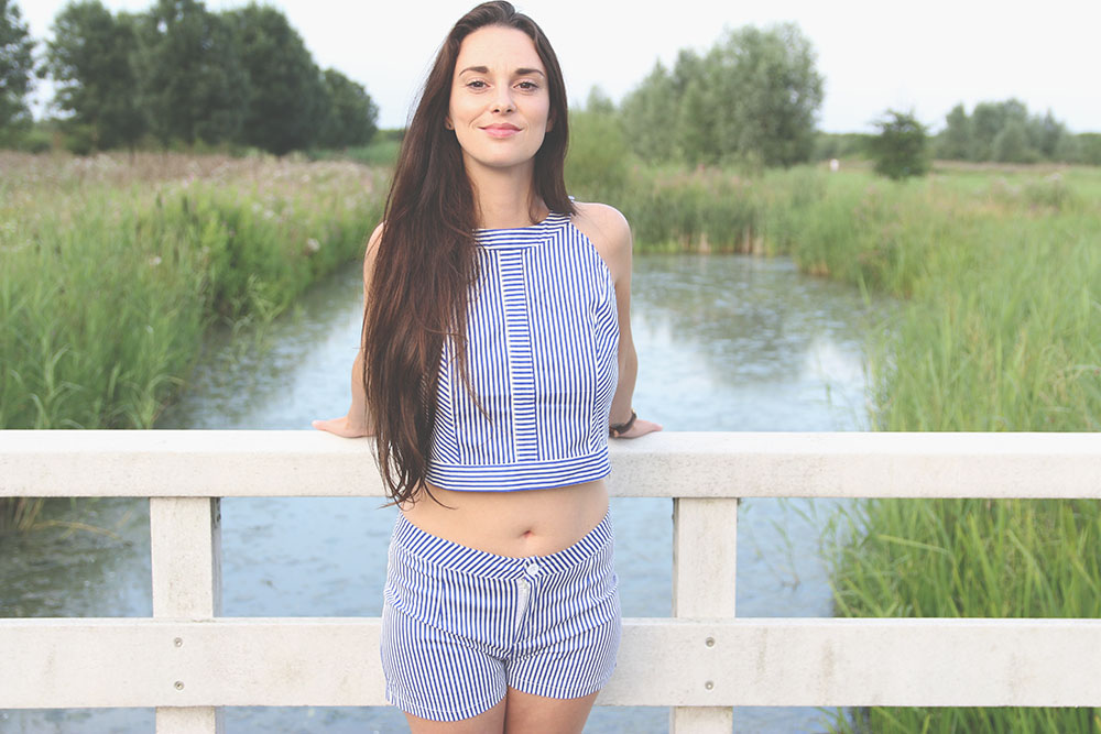 Deze combi viel ons direct op in de webshop, zo leuk met dat streepje! Streepjes zijn op dit moment natuurlijk sowieso hip. Het broekje zit perfect en het topje bijna perfect, het had eventueel ietsje strakker gemogen. De hoeveelheid streepjes zorgen wel voor wat drukke foto’s. Het setje is gemaakt van stevige, katoenen stof en zit heel fijn. Het setje kost 27 Dollar en is hier te vinden in de webshop.