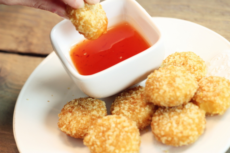 En dan nu het resultaat…….. *tromgeroffel*…. Eerlijk, het valt me absoluut niet tegen! Frituur smaakt toch vaak nét iets anders dan ovenproducten, maar ik vind de hapjes erg lekker krokant, met een lekkere smeuïge kaasvulling.