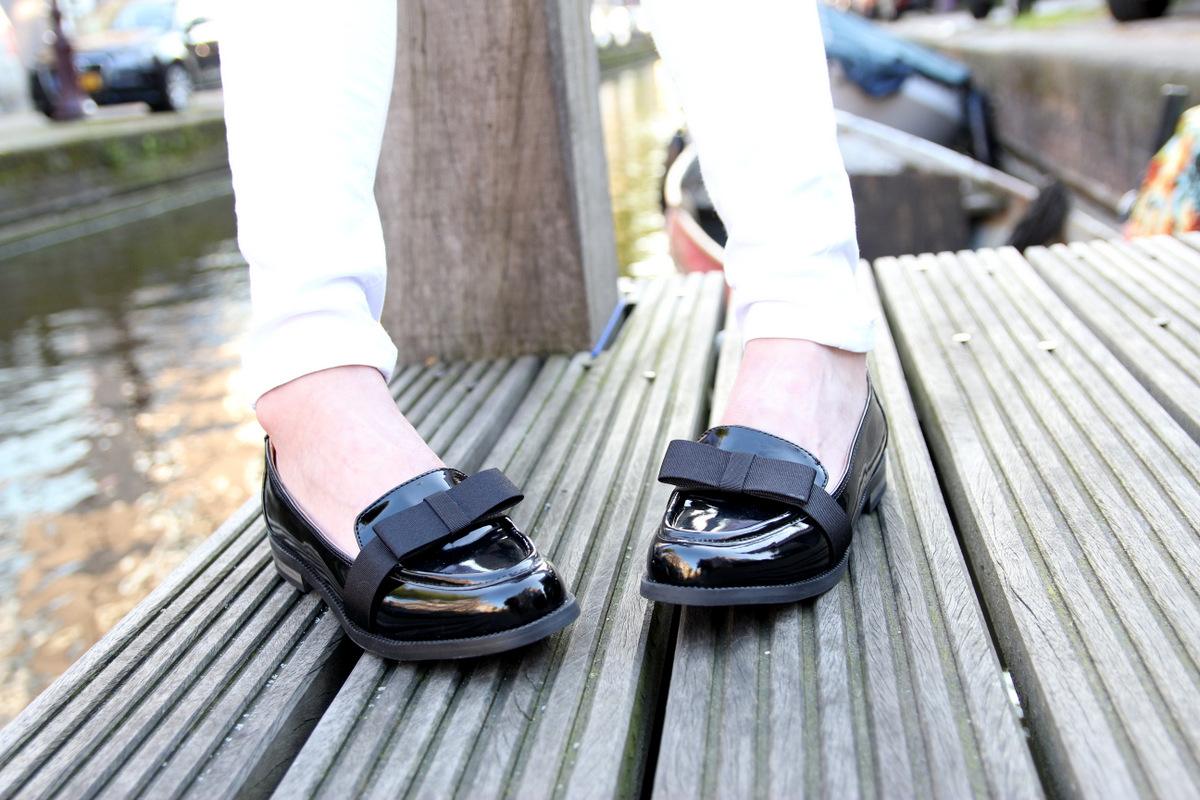 I’m in love with the shoes! Deze vintage schoenen met eenvoudige strik vind ik zo leuk! Ze zitten heel fijn, lopen perfect door de lage hak en zijn toch vrouwelijk. Het zwart lak ziet er mooi uit en… Liefde! β₯ Deze loafers kosten 24 euro.