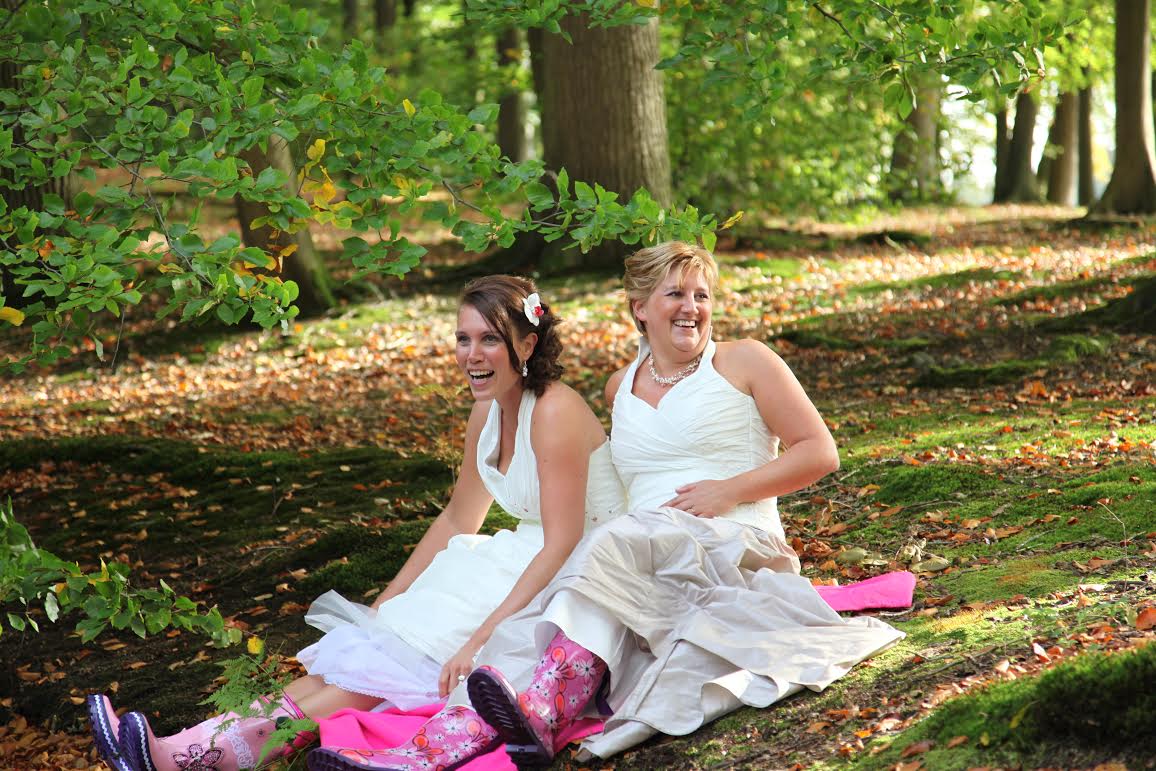 Anneloes vroeg me ten huwelijk, we zijn in oktober 2012 getrouwd. Het was een stralende dag, we trouwden op blote voeten, buiten in de zon! Twee maanden daarna werd ik zwanger van onze oudste dochter Joek! Tijdens de zwangerschap regelden we de adoptie van Anneloes voor Joek, getrouwd zijn was blijkbaar toch nog niet genoeg voor ons als 2 vrouwen om gelijke rechten en plichten te hebben wat betreft kinderen. Gelukkig hadden we een fijne advocaat die dit snel en goed voor ons regelde.