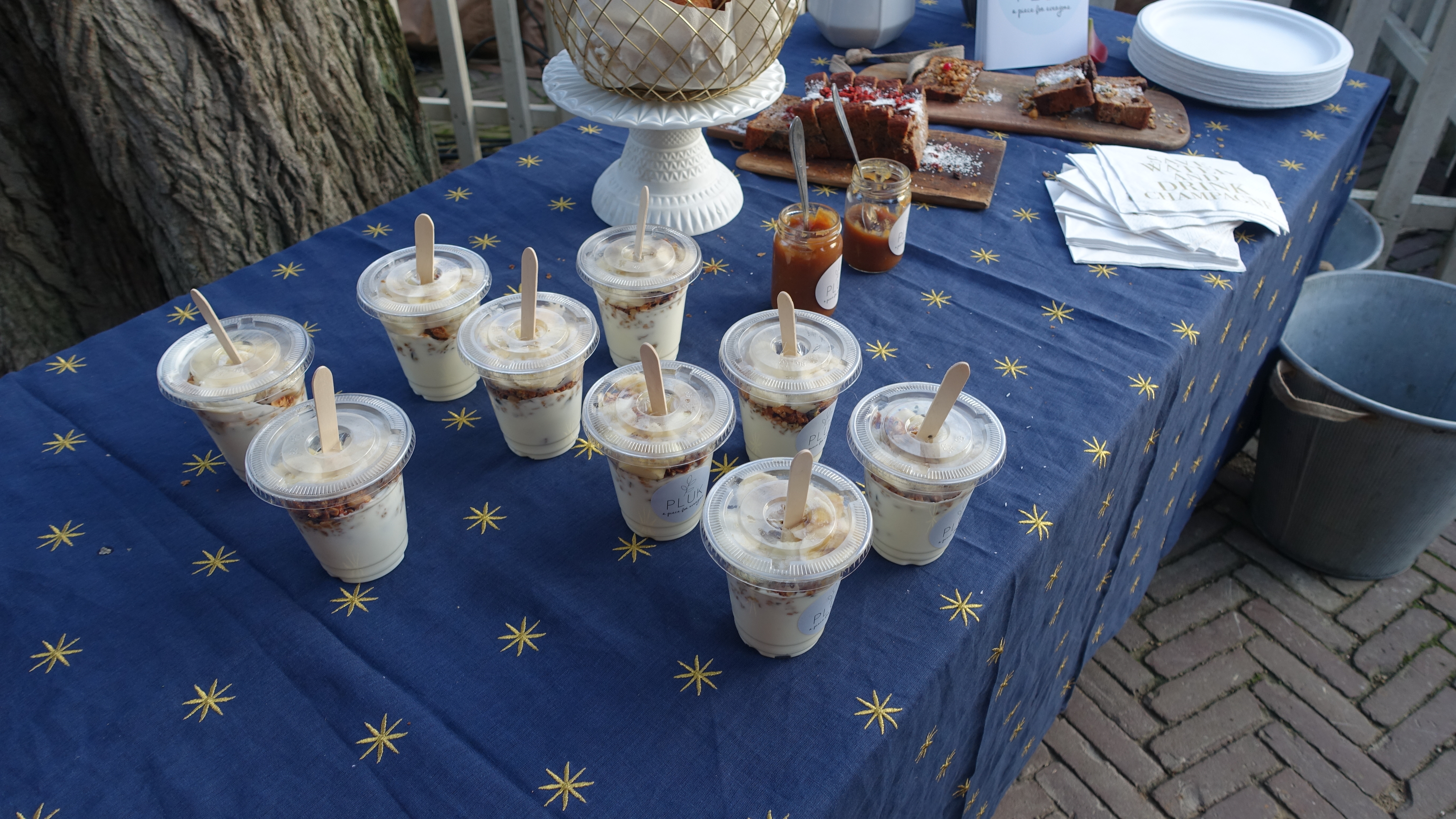 Afgelopen zaterdag waren we bij een kerstmarkt van Sissy Boy. We waren uitgenodigd voor een ontbijt met allerlei lekker eten van het biologische ontbijt en lunchrestaurantje Pluk. Pluk is gevestigd in Amsterdam in de 9 straatjes. Ze hadden heerlijke yoghurt met granola en banaan, bananenbrood, croissants en smoothies. Zeker een aanrader om hier eens te gaan ontbijten of lunchen.