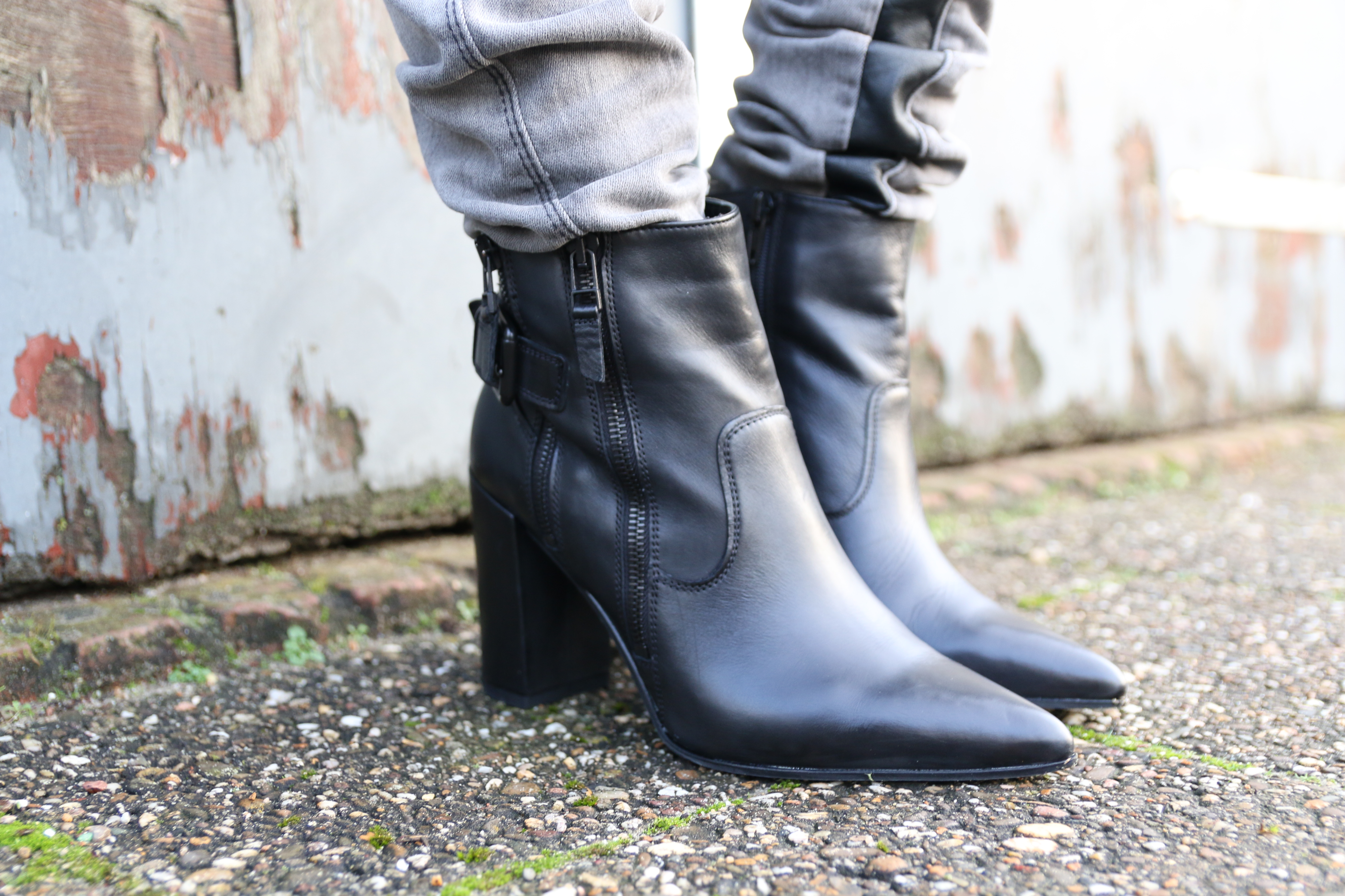 Joyce combineert de trui dus met een broek van We Fashion en een wat ouder hoedje. Ik weet helaas niet meer waar we dat ooit gekocht hebben. Verder draagt ze hele mooie hoge laarsjes die we een tijd geleden bestelden bij Omoda. Ze zijn mooi slank én hoog en staan super vrouwelijk. Door de ‘brede’ hak lopen ze heel makkelijk. Geen gedoe in de stad dus met punthakken die blijven haken tussen klinkertjes.