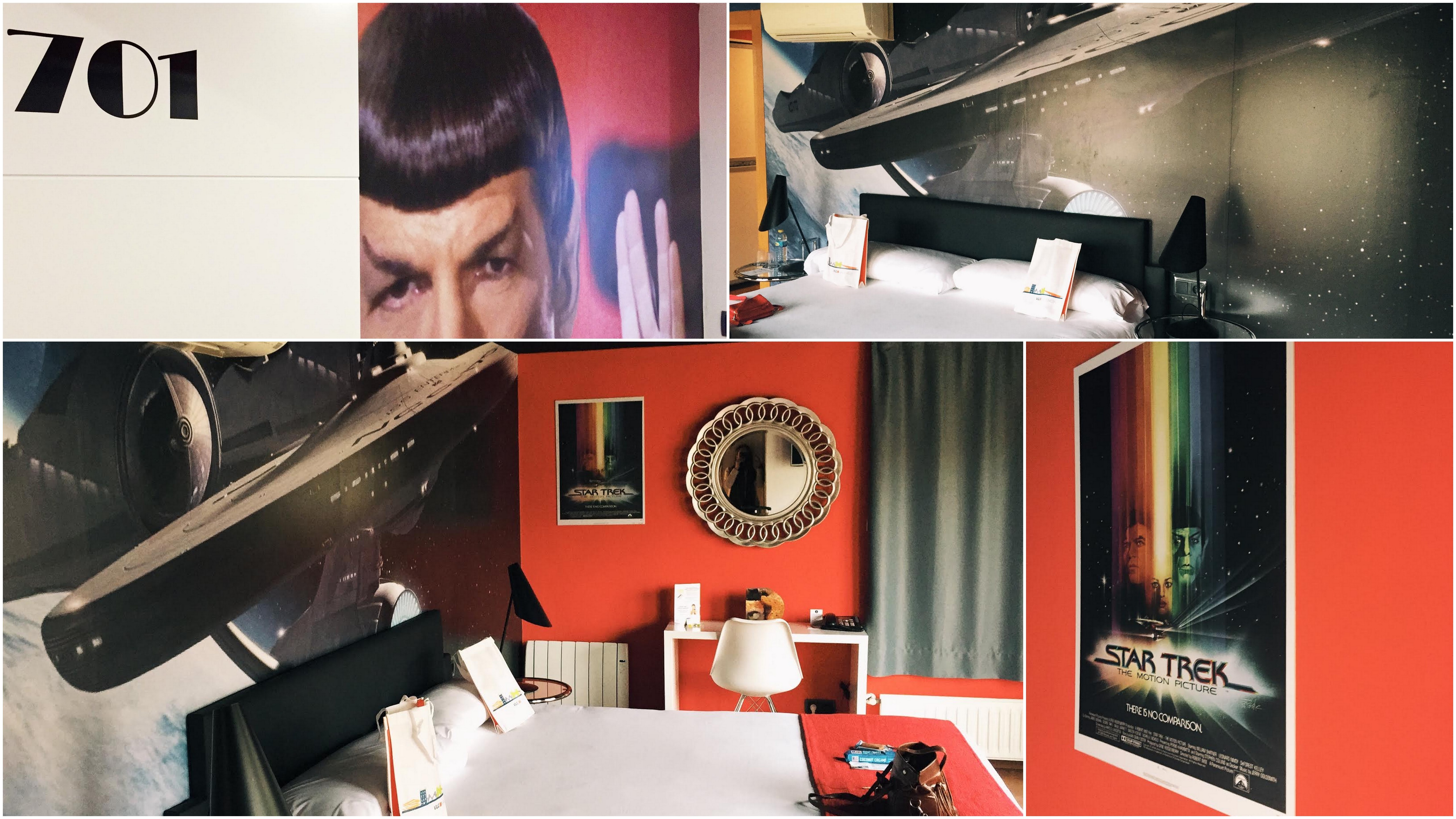 We kregen een kamer op de 7de verdieping van het hotel Casual Valencia del Cine. Met een vrij bijzondere lift (check de vlog) bereikten we de kamer. OMG wat een geweldige kamer! Mede door mijn broer ben ik redelijk fan van Star Trek en deze kamer was helemaal in Star Trek stijl, echt geweldig. Het was de familiekamer en hij was enorm ruim en mooi en origineel ingericht. We waren vrij door het dolle toen we binnenkwamen. Het hotel ligt in het centrum en vinden we écht een aanrader om naar toe te gaan als je een paar daagjes naar Valencia gaat.