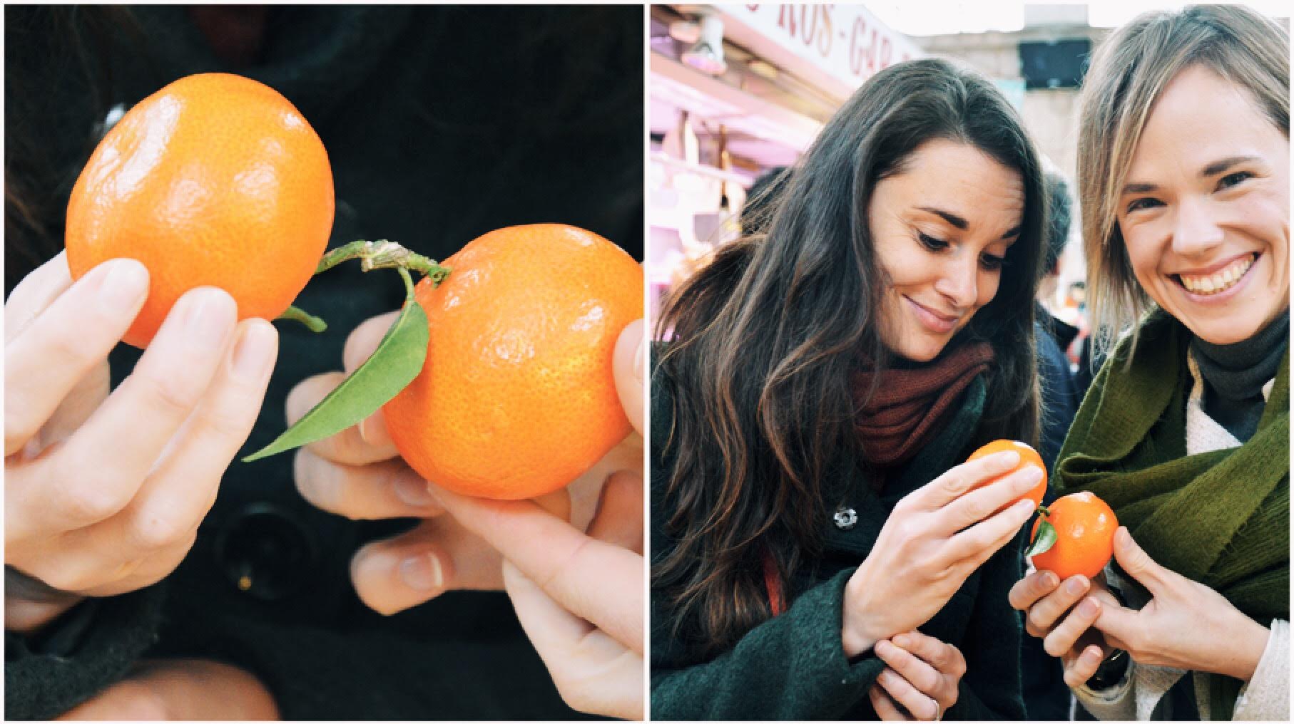 De mandarijnen zagen er hier zo leuk uit! Overal zat nog een steeltje aan. We kregen allemaal een mandarijn mee en Joyce en ik kregen een setje dat nog aan elkaar vast zat ♥