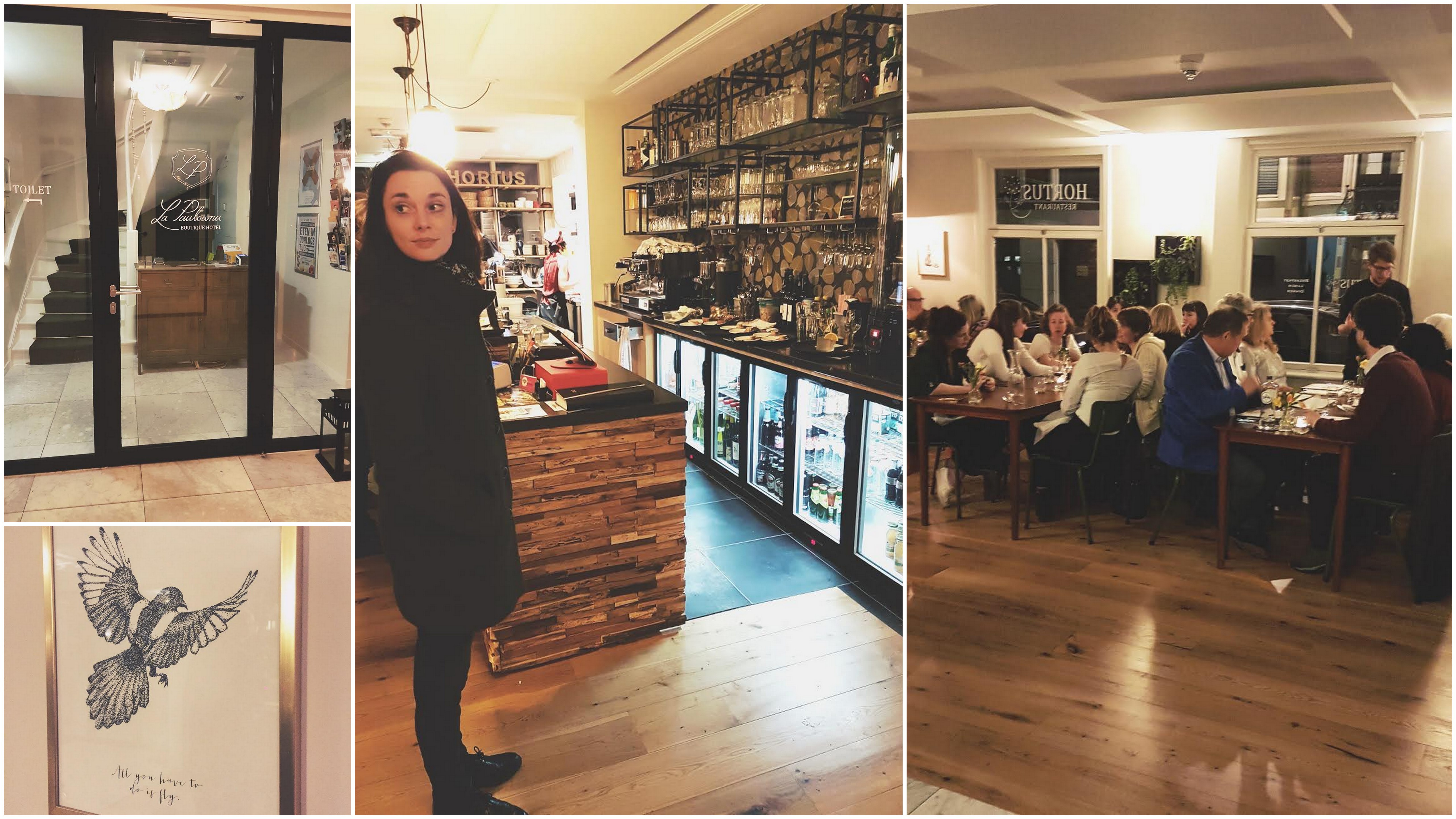 Nog enigszins voldaan van de bitterballen en kibbuhlingen, liepen we rond achten richting het boutique hotel/restaurant ‘Hortus’. De buitenkant zag er erg mooi en sfeervol uit.