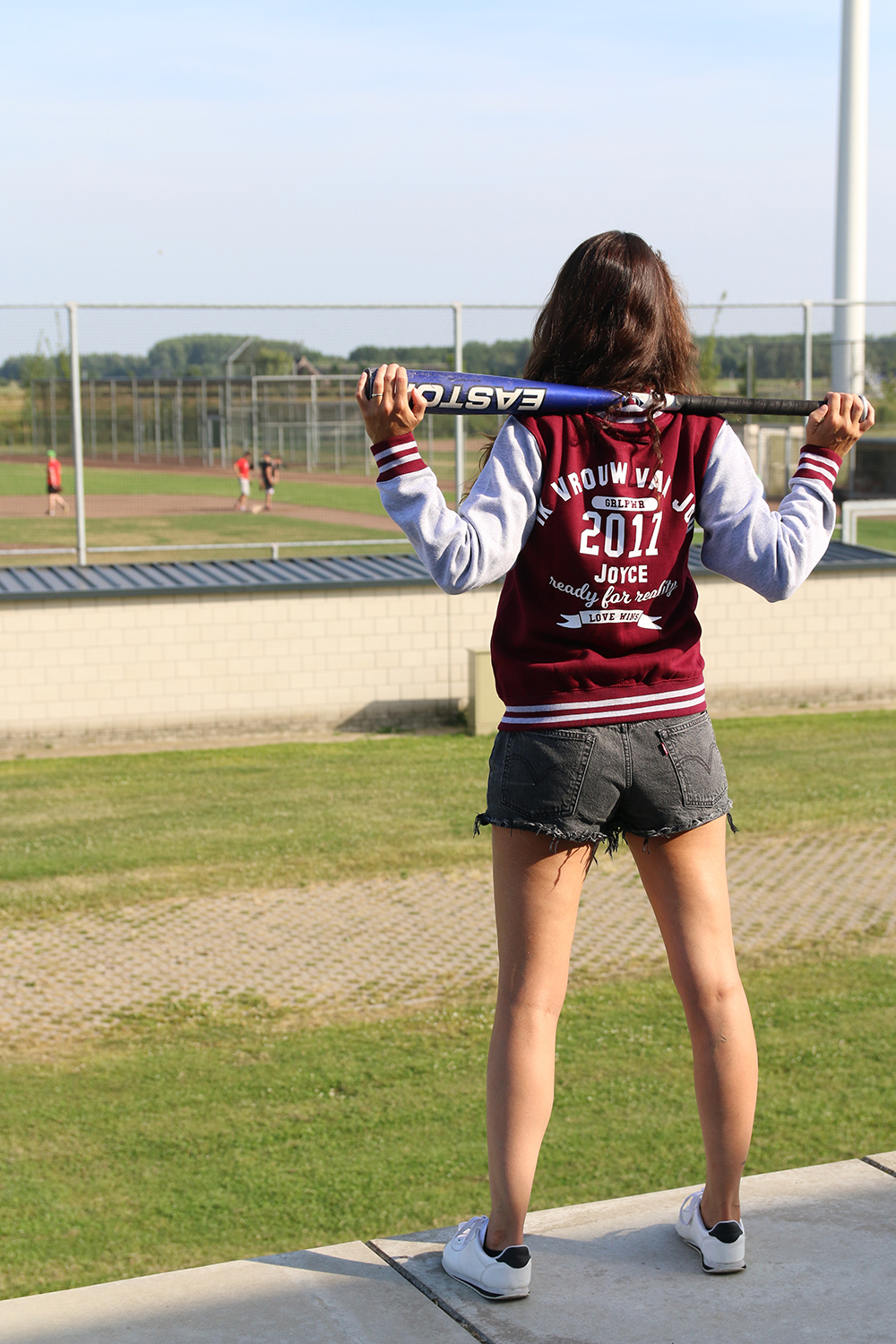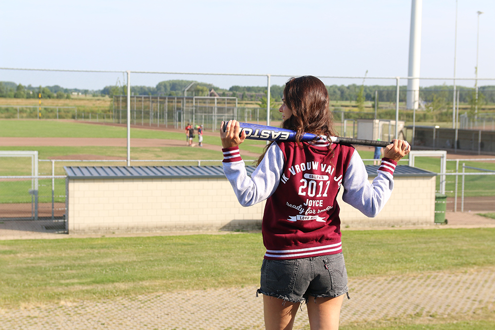 Bulbby ontwerpt allerlei verschillende gepersonaliseerde producten en omdat ze 12,5 jaar bestaan, leek het ze leuk om een samenwerking aan te gaan. Toen we de baseball jacks in de webshop zagen waren we beiden verkocht en dus creëerden we onze eigen jacks. Voor de foto’s leek het ons wel zo leuk om een toepasselijke locatie te gebruiken en dus reden we naar de dichtstbijzijnde honkbal club.