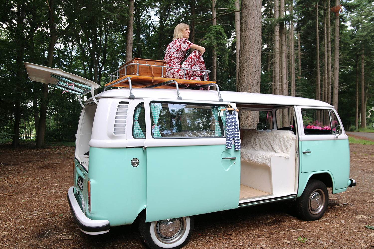We waren in ieder geval super enthousiast toen we Minty voor ons klaar zagen staan. Dat was precies de Volkswagen bus waar ik vooraf het meest enthousiast over was geweest. Er was ook nog een crème en pastel blauw busje én een Volkswagen camper waarmee je naar het buitenland kan. Wij waren sowieso in love met Minty. Zo’n mooi kleurtje en een geweldig tof interieur met schapenvachtjes, een houten vloertje en van die vintage gordijntjes. Super cute én romantisch! Tegelijkertijd vonden we het samen natuurlijk ook wel spannend, want hoe rijdt zo’n oldtimer? We rijden beiden in vrij moderne auto’s en zijn zo’n klassieker helemaal niet gewend….
