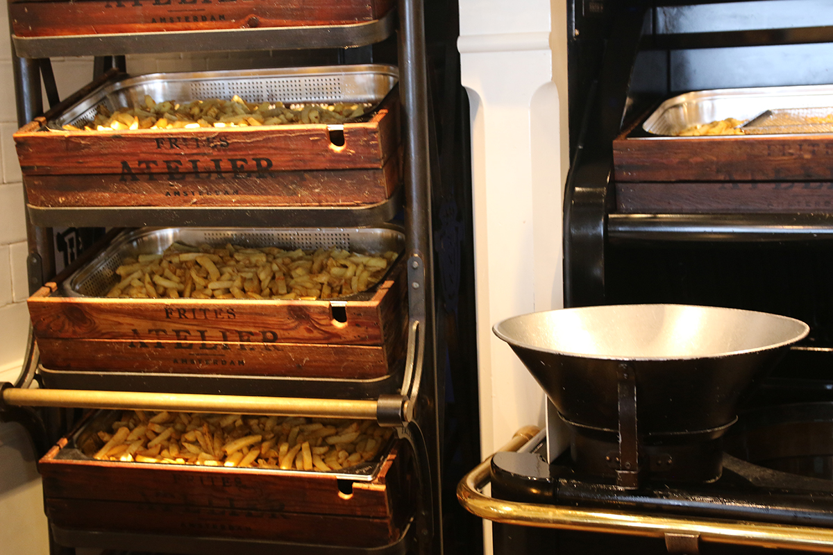 “Het Frites Atelier Amsterdam is ontstaan vanuit de liefde voor frites. Volgens de oprichters kon frites eten namelijk nog veel leuker zijn dan het tot dusver werd gedaan. Daarom hebben ze sterrenchef Sergio Herman gevraagd de frites te maken en Studio Piet Boon gevraagd de ateliers te ontwerpen. Hierdoor kan je genieten van exclusief lekkere friet in een mooie zaak met de uitstraling van een ouderwetse Frans-Amsterdamse brasserie. De eerste Ateliers in Den Haag, Utrecht, Arnhem en Antwerpen zijn inmiddels geopend. De dependance in Amsterdam, waar het idee van geboren is, zit er ook aan te komen.”