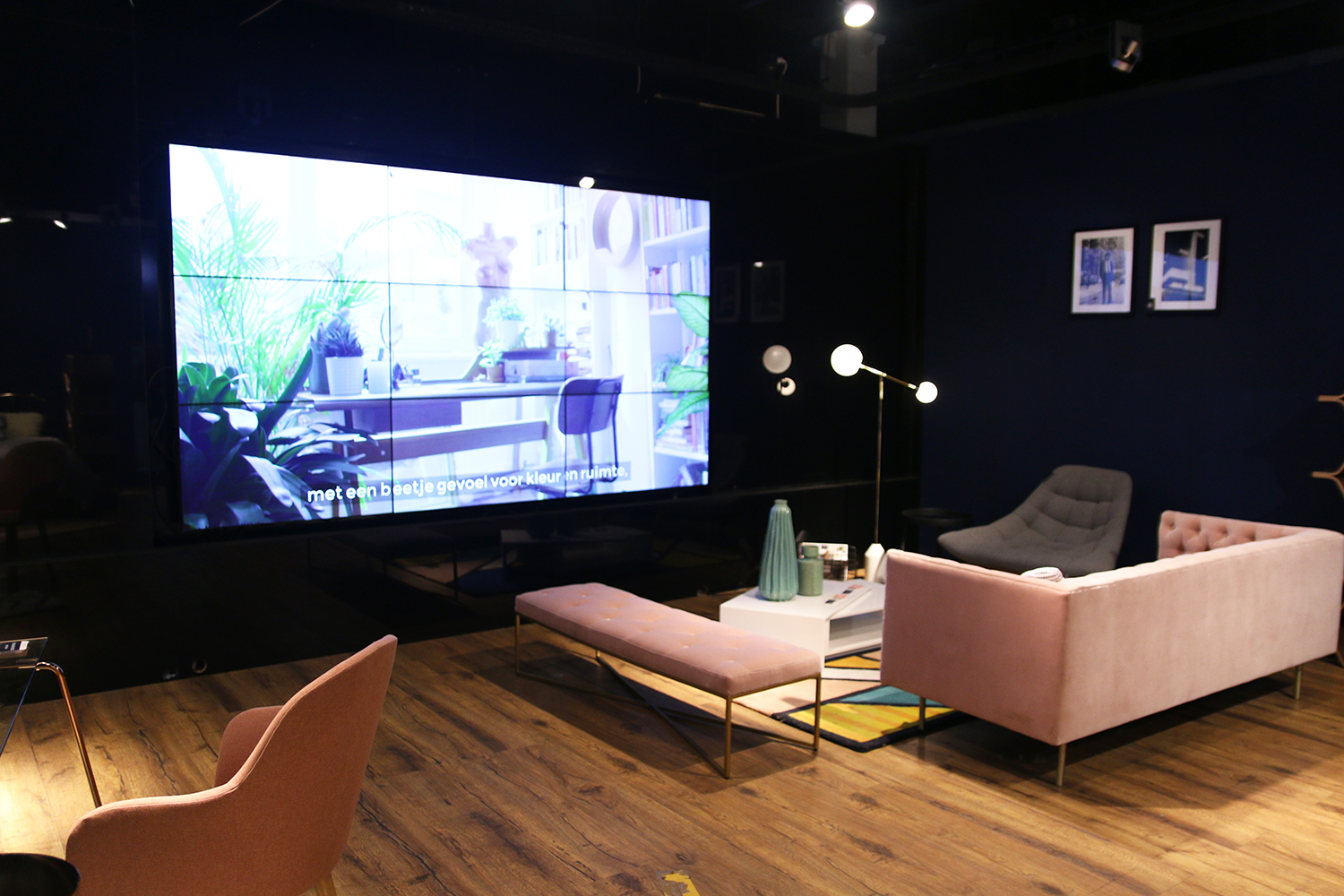 Op een groot scherm wordt een film afgespeeld over interieur en MADE. Ik was direct verliefd op de bank toen ik binnenwandelde én op de boekenkast en spiegel. De sfeer in de pop-up store is hip, maar cosy. Daar houd ik van. Ik vind het bovendien leuk dat veel items nét even anders zijn, waardoor je niet het idee hebt dat je dezelfde bank, kast of tafel hebt als je buurvrouw, zoals bij veel spullen IKEA, Leenbakker en Wehkamp items.