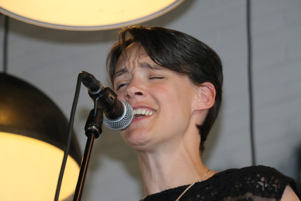 Rond 19:45 uur startte het officiële gedeelte van de boekpresentatie. Deze ving aan met een prachtig nummer van Anne van Veen. Onze uitgever, Bianca van Splint Media gaf vervolgens een mooie speech over het ontstaan van het boek. Hierna deden wij ook wat… En toen was het moment daar om het eerste exemplaar van Ik Vrouw van Jou te overhandigen aan Bertie. Zo leuk! Echt geweldig dat ze helemaal vanuit Zeeland naar onze boekpresentatie was gekomen.