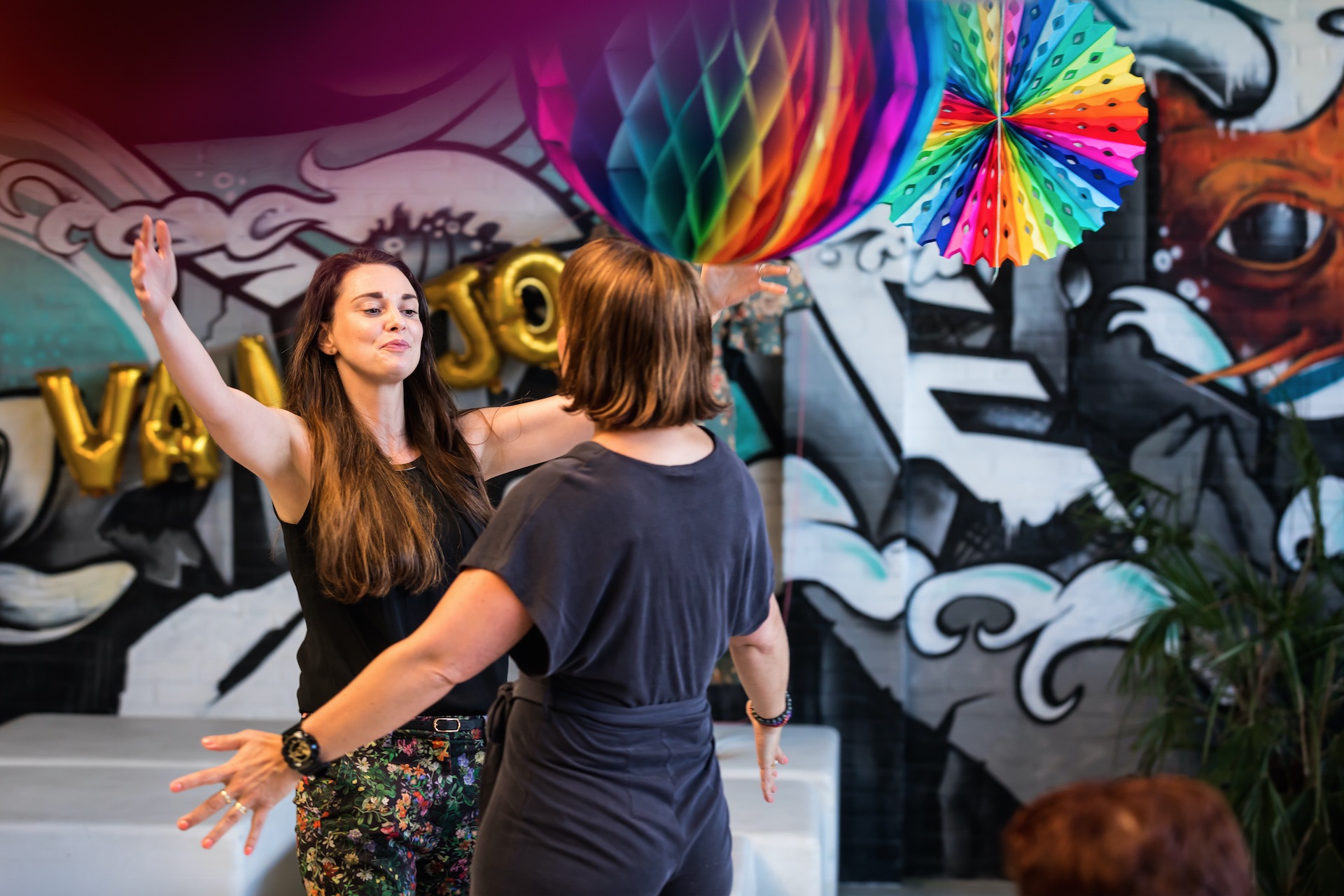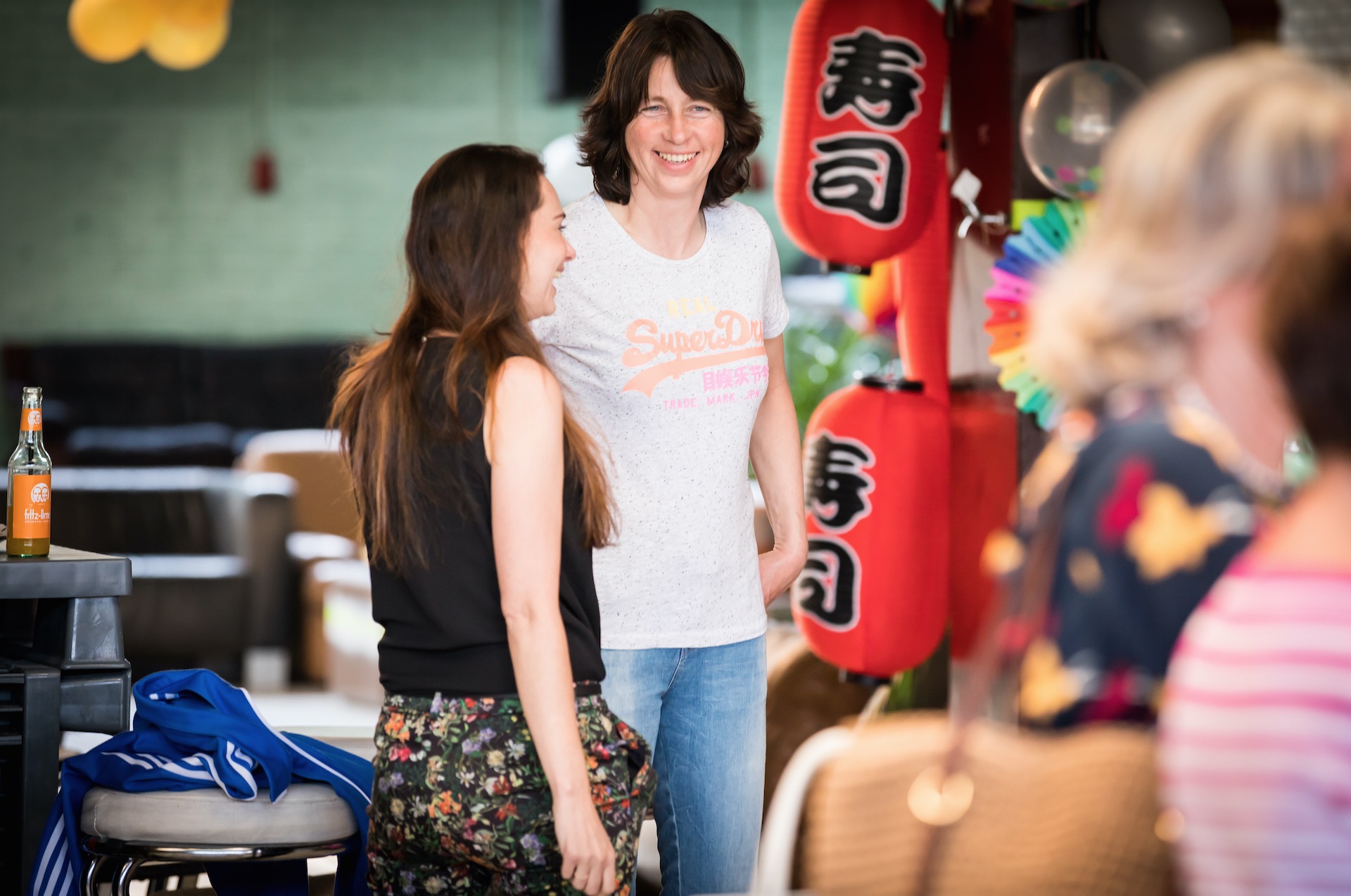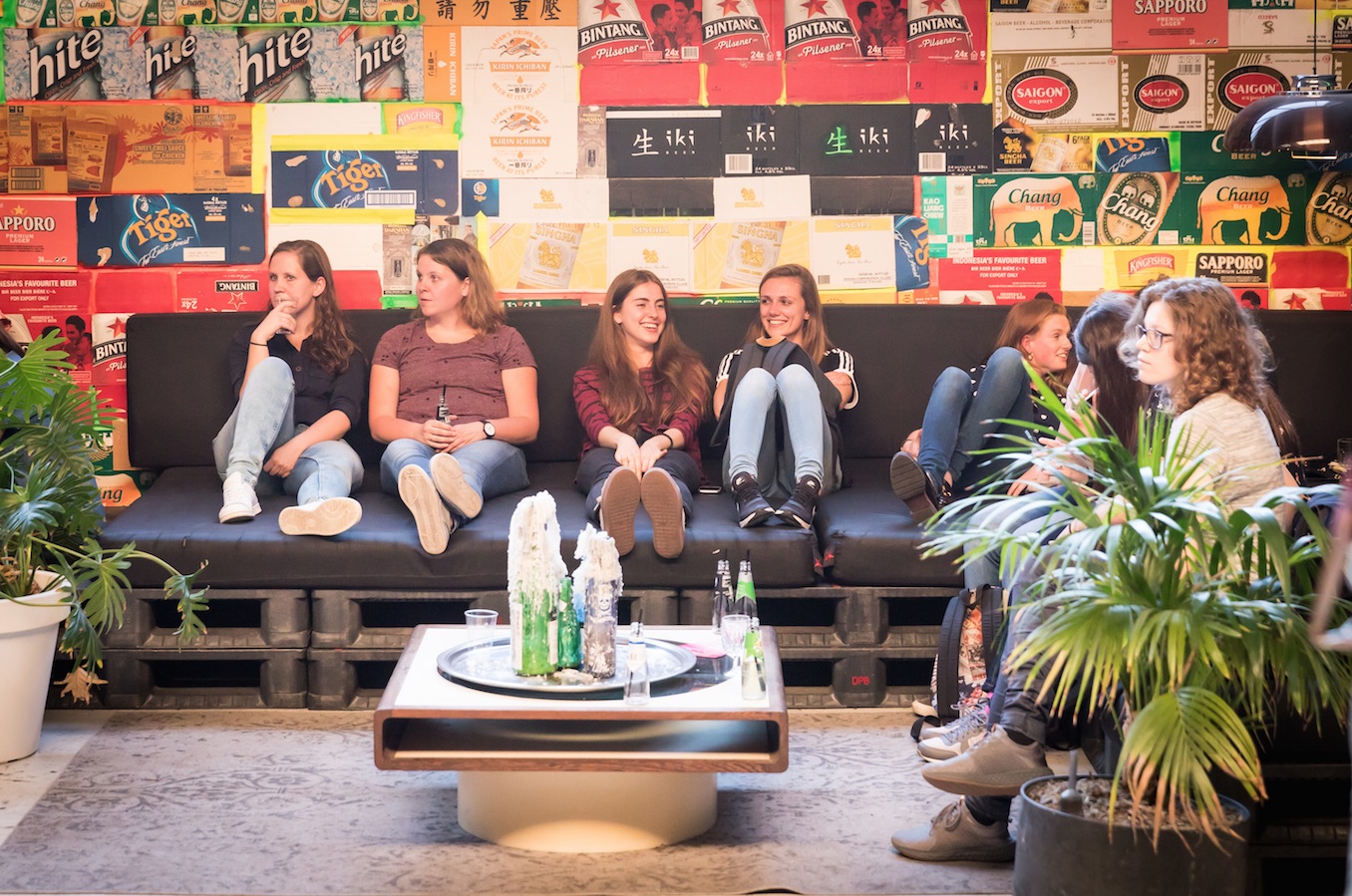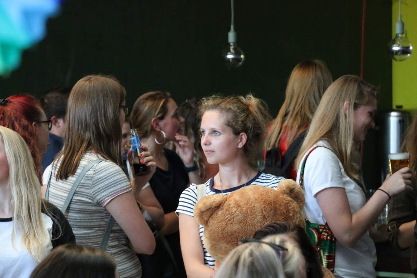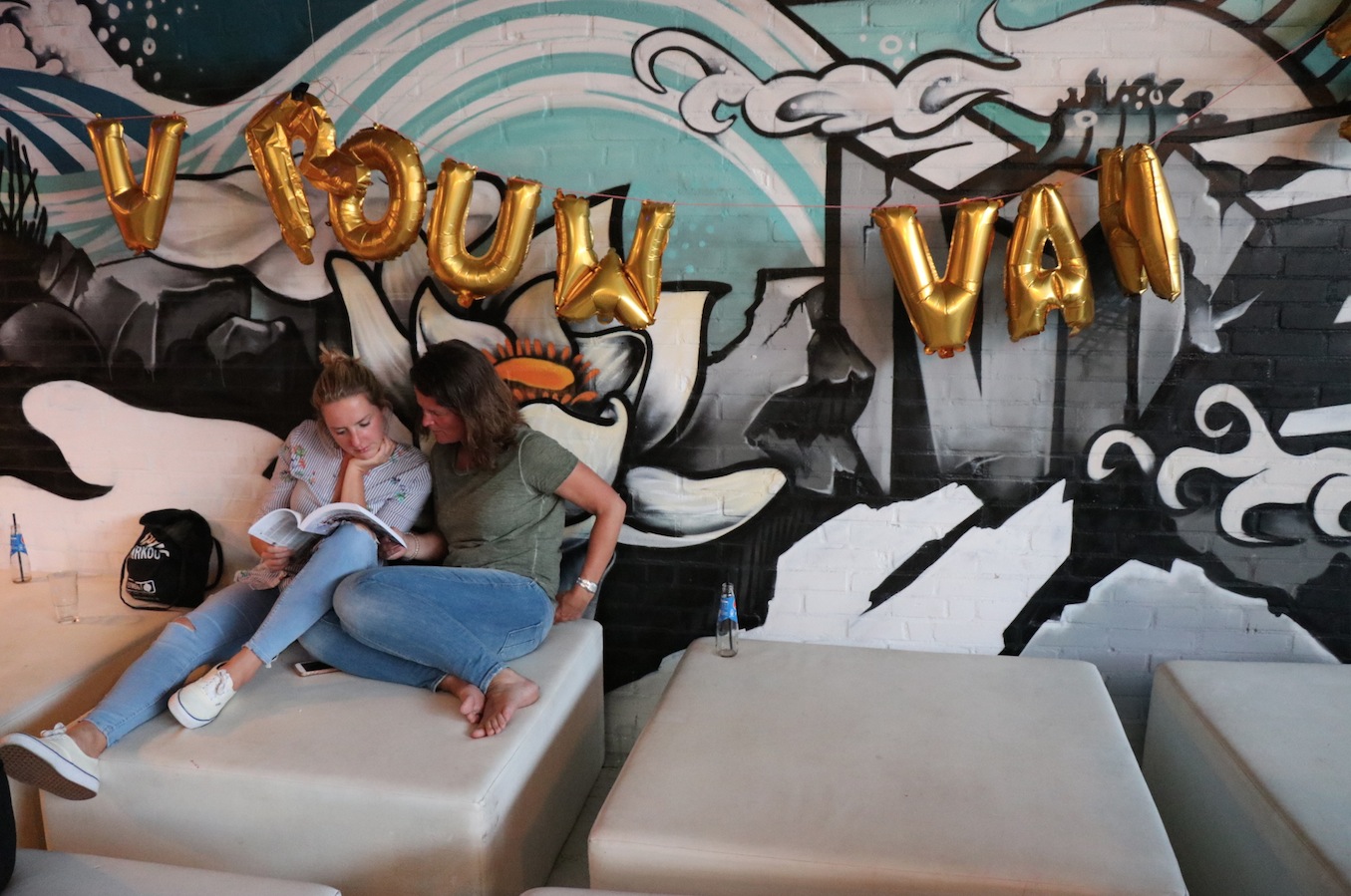 De avond startte met het opbouwen van de locatie. Het podium moest verplaatst, de Volkswagenbus moest naar binnen. De videobeelden van dit maatwerk zijn echt geweldig! Er moest een stuk of 25372829 banken verplaatst én we konden onze versiering ophangen die we kregen van de Feestwinkel.nl. Tegelijkertijd arriveerden ook Bertie, de drukker van ons boek en alle muzikanten voor een soundcheck. Allemaal hielpen ze ook bij het opblazen van de ballonnen en ophangen van de slingers. Enorm lief! We gingen met z’n allen wat eten. Echt aan aanrader bij LE:EN. Sjors arriveerde, onze familie kwam alvast binnen… en toen gooiden we de deuren voor jullie allemaal open. Zo spannend!