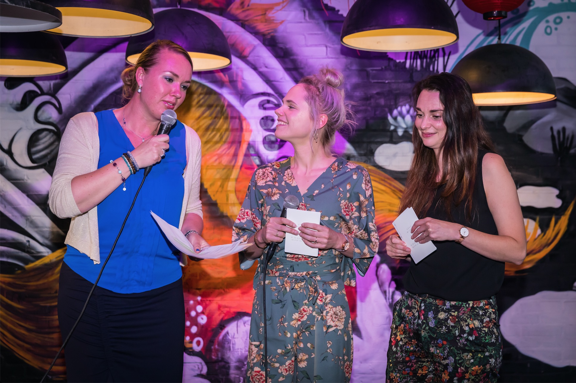 Rond 19:45 uur startte het officiële gedeelte van de boekpresentatie. Deze ving aan met een prachtig nummer van Anne van Veen. Onze uitgever, Bianca van Splint Media gaf vervolgens een mooie speech over het ontstaan van het boek. Hierna deden wij ook wat… En toen was het moment daar om het eerste exemplaar van Ik Vrouw van Jou te overhandigen aan Bertie. Zo leuk! Echt geweldig dat ze helemaal vanuit Zeeland naar onze boekpresentatie was gekomen.