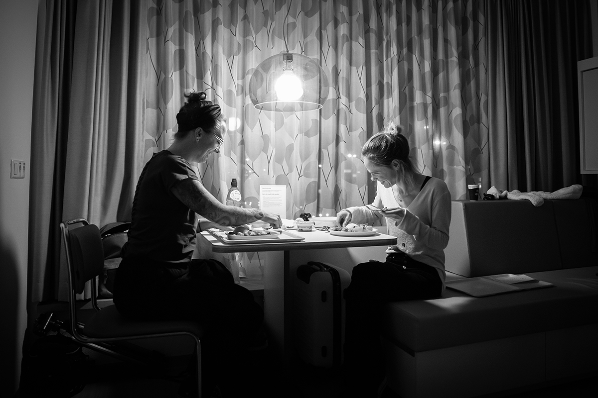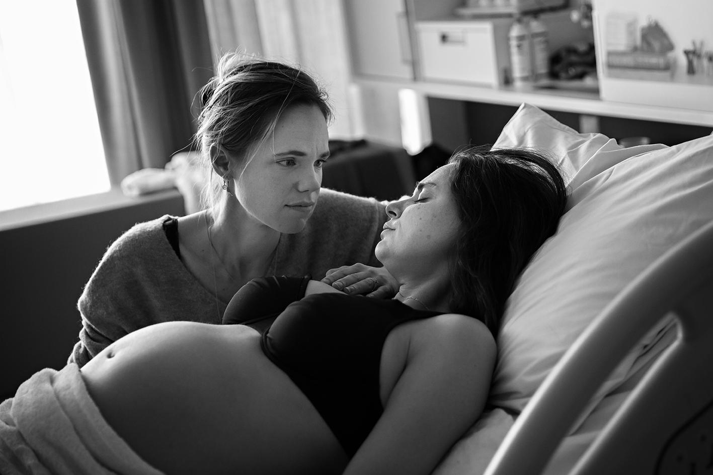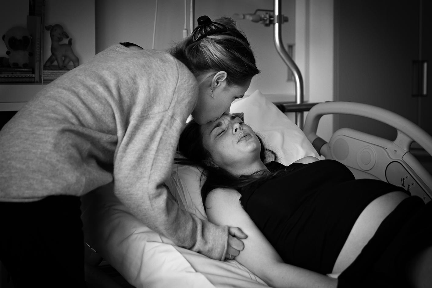 Afhankelijk van het tijdstip zou hierna wat familie langskomen. We vertelden welk type foto’s we mooi vonden en wat we vooral niet op de foto wilden. Eigenlijk was de inhoud van het gesprek niet eens zo belangrijk, het ging er vooral om of we een klik hadden. Die klik was er. Het voelde eigenlijk gewoon goed. Mijn idee van een volkomen vreemde in de kamer werd hierdoor ook minder. Uiteindelijk bleek die ‘volkomen vreemde’ zelfs heel fijn gezelschap in de uren waarin Joyce op de o.k. lag. Bovendien realiseerde ik me dat dit ‘vreemd zijn’ ook het geval is bij de verloskundige, arts of verpleegsters die aanwezig zijn.